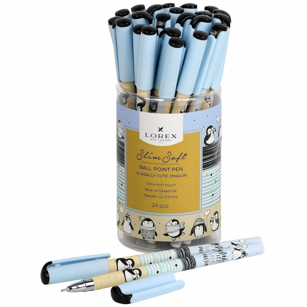 Купить Ручка шариковая Lorex Illegally Cute Pinguin Slim Soft (0.5мм, синяя, прорезиненный корпус), 24шт. с доставкой по всей России.