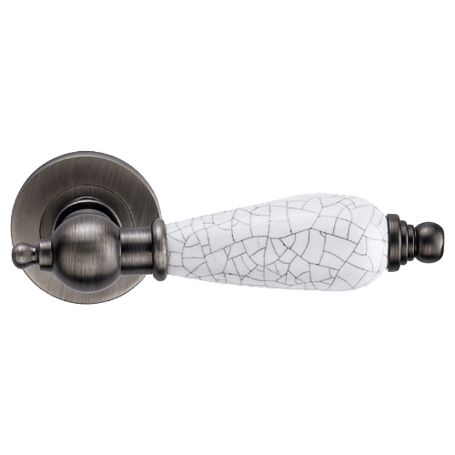 Купить Ручки дверные на круглой розетке Archie GENESIS Redondo Bl. Silver — черненое серебро, керамика, кракелюр с доставкой по всей России.