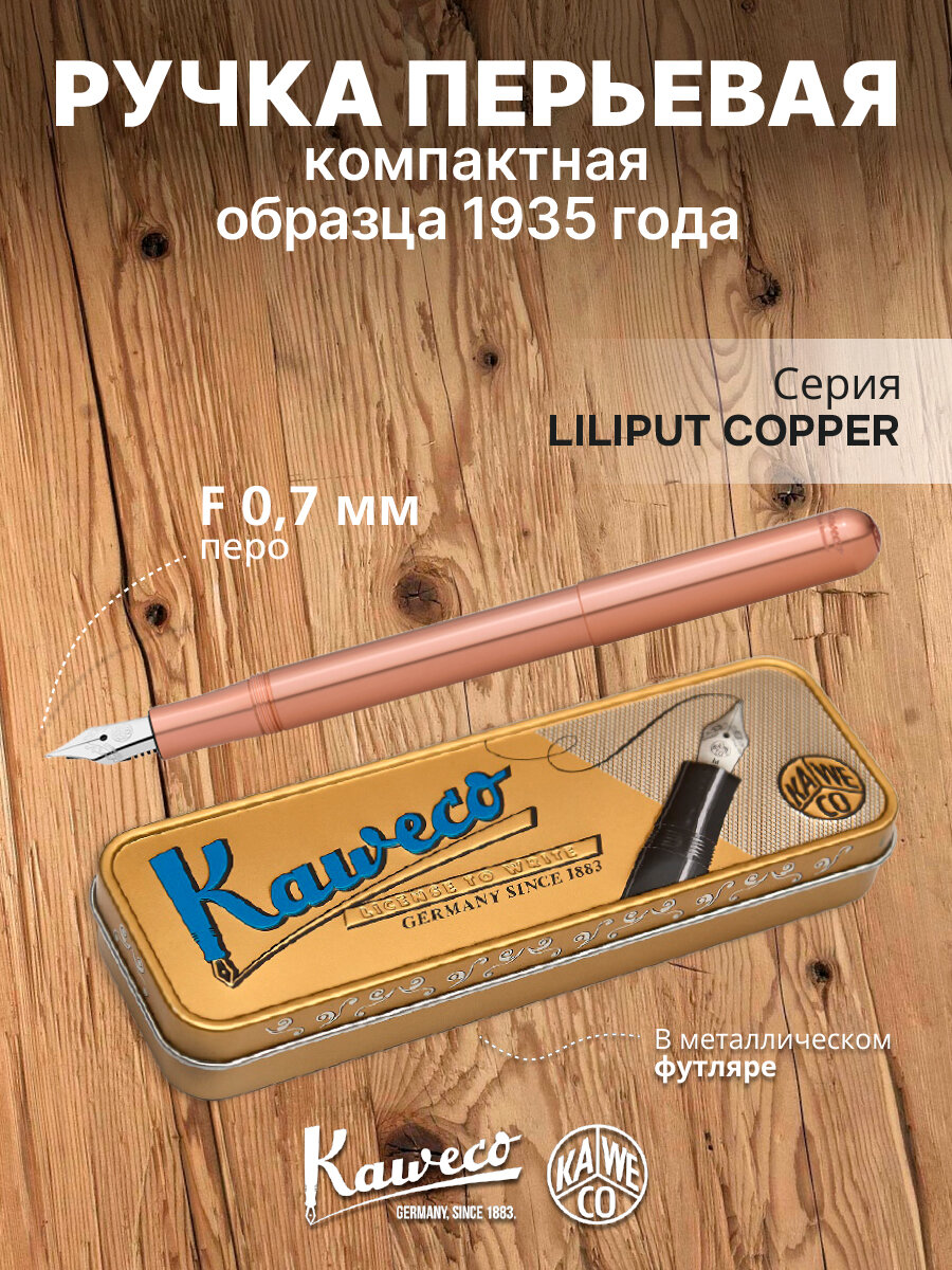 Ручка перьевая KAWECO LILIPUT Copper медный корпус в подарочном футляре F 0.7мм: сравнение цен, характеристики, фото, актуальное наличие и цены.