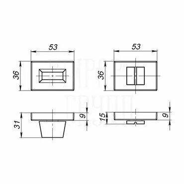 Ручка поворотная. Завертка сантехническая / межкомнатная, накладная Прямоугольник WC-BOLT BK6 UCS BL-26 Черный