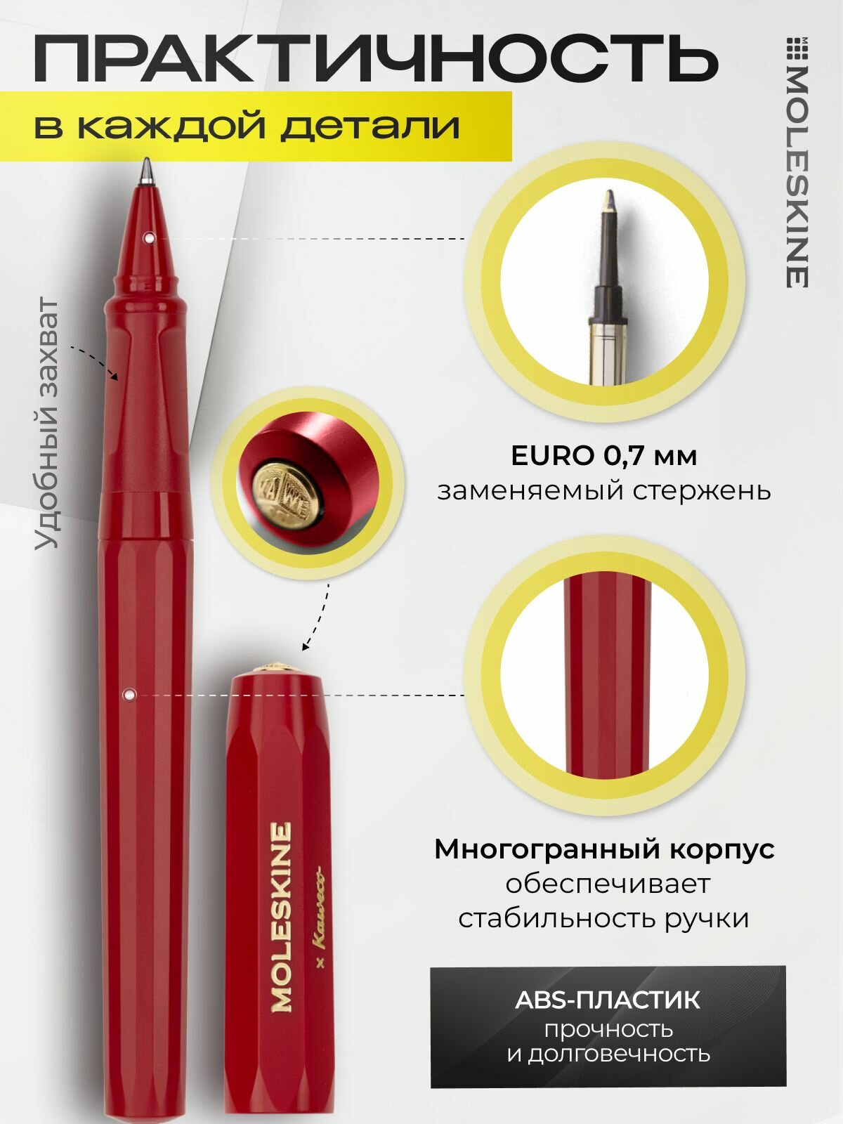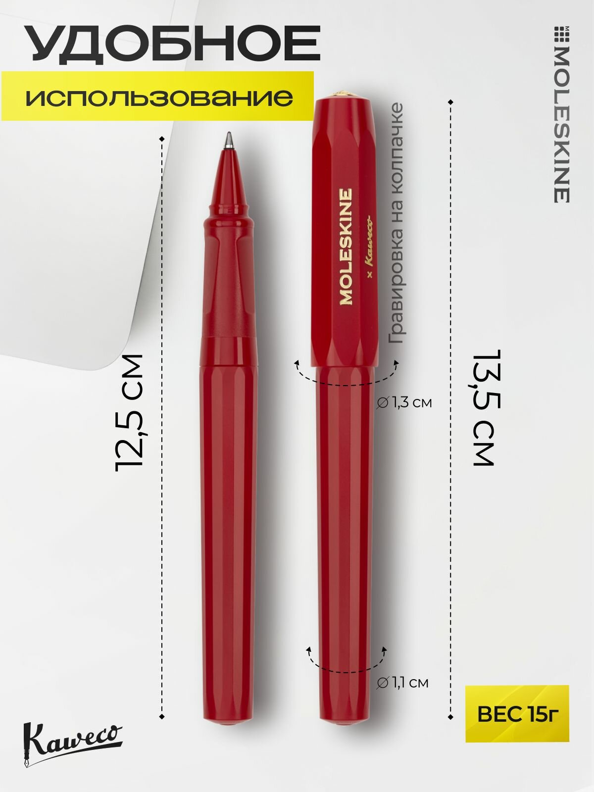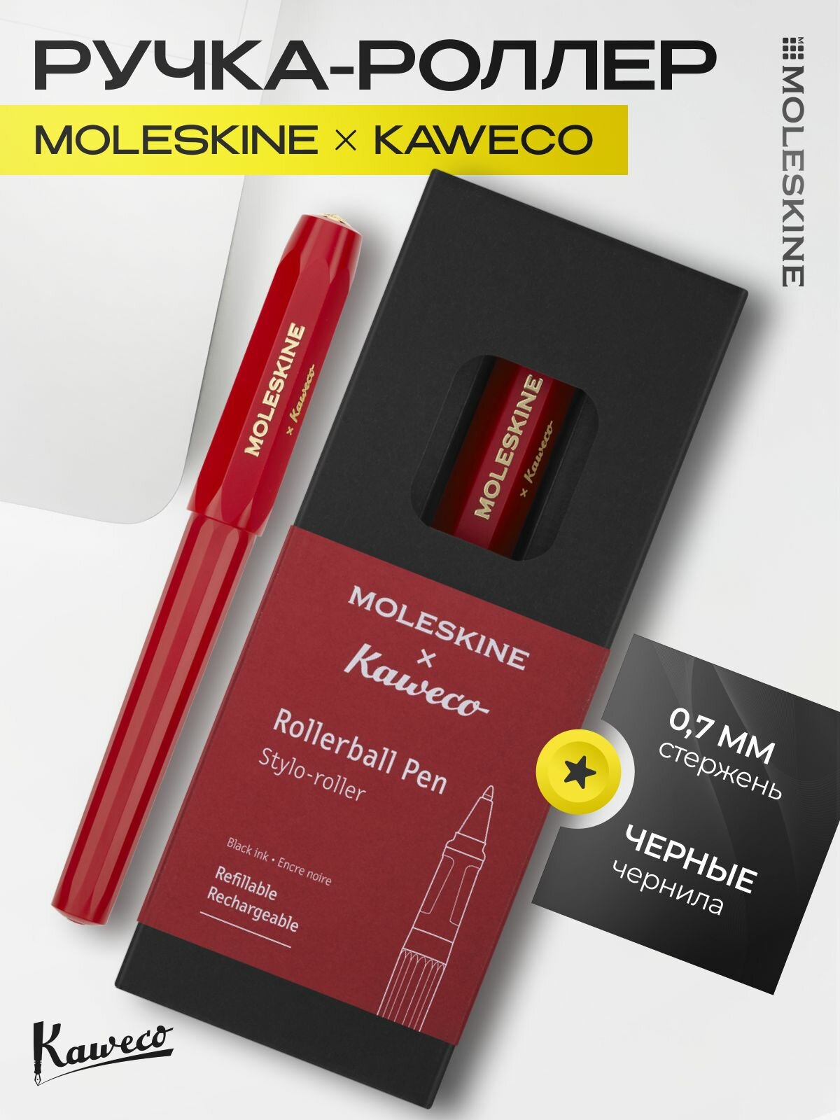 Купить Ручка-роллер MOLESKINE KAWECO (KAWROLLERPENRED) красная в подарочной коробке черные чернила с доставкой по всей России.