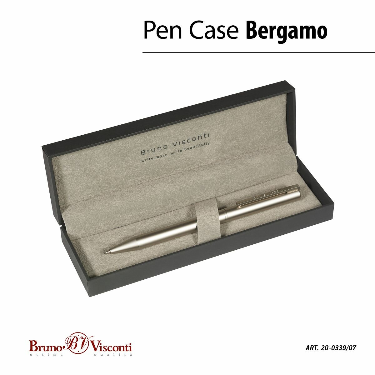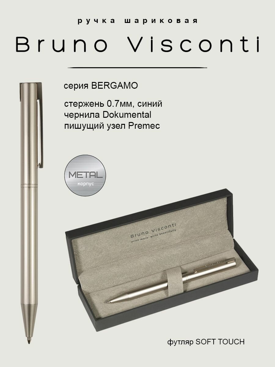 Купить Ручка шариковая автоматическая BrunoVisconti «BERGAMO» цвет корпуса шампань 0.7 мм, синий, в футляре с доставкой по всей России.