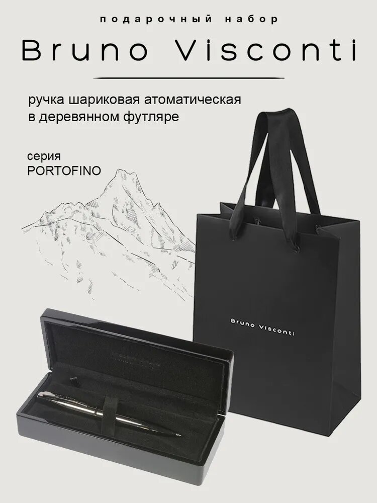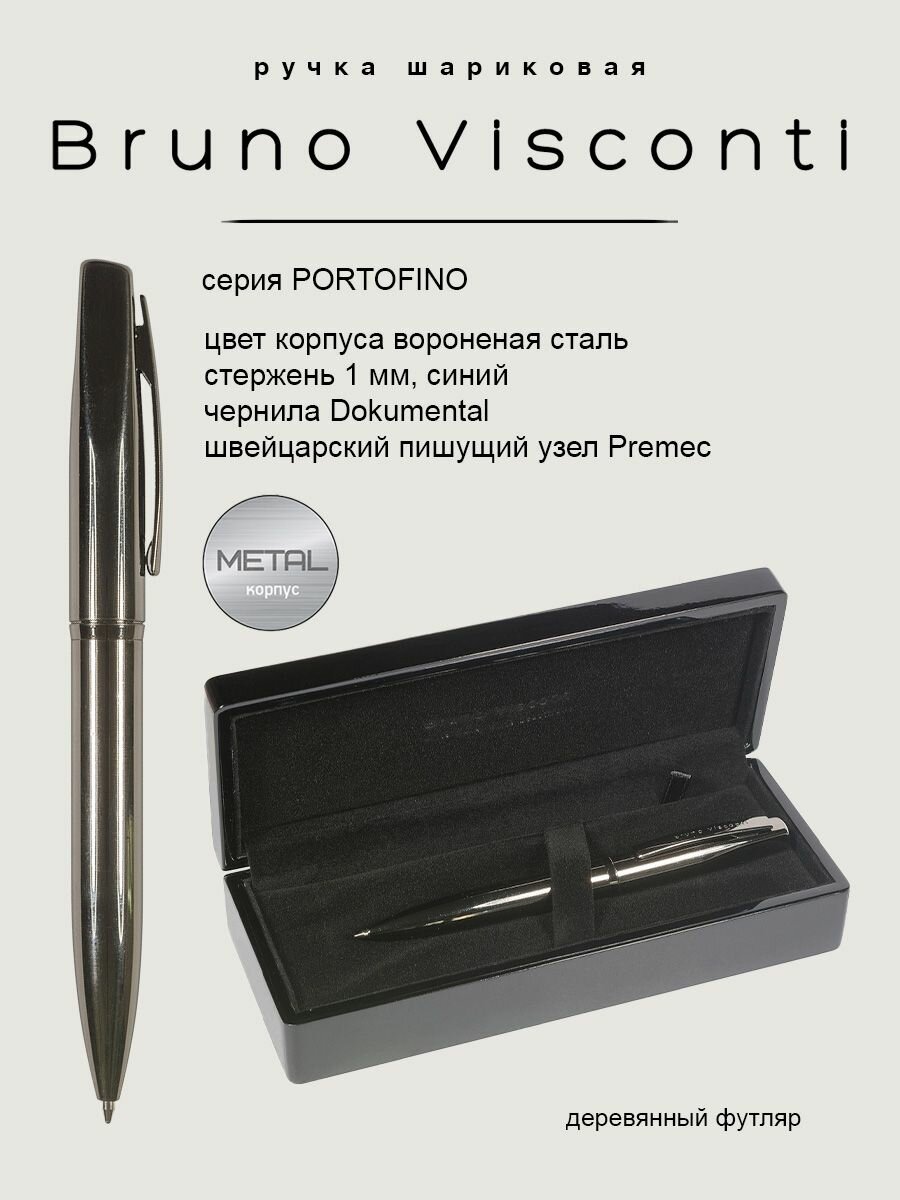 Ручка шариковая автоматическая BrunoVisconti «PORTOFINO» цвет корпуса вороненая сталь 1 мм, в деревянном черном футляре: сравнение цен, характеристики, фото, актуальное наличие и цены.