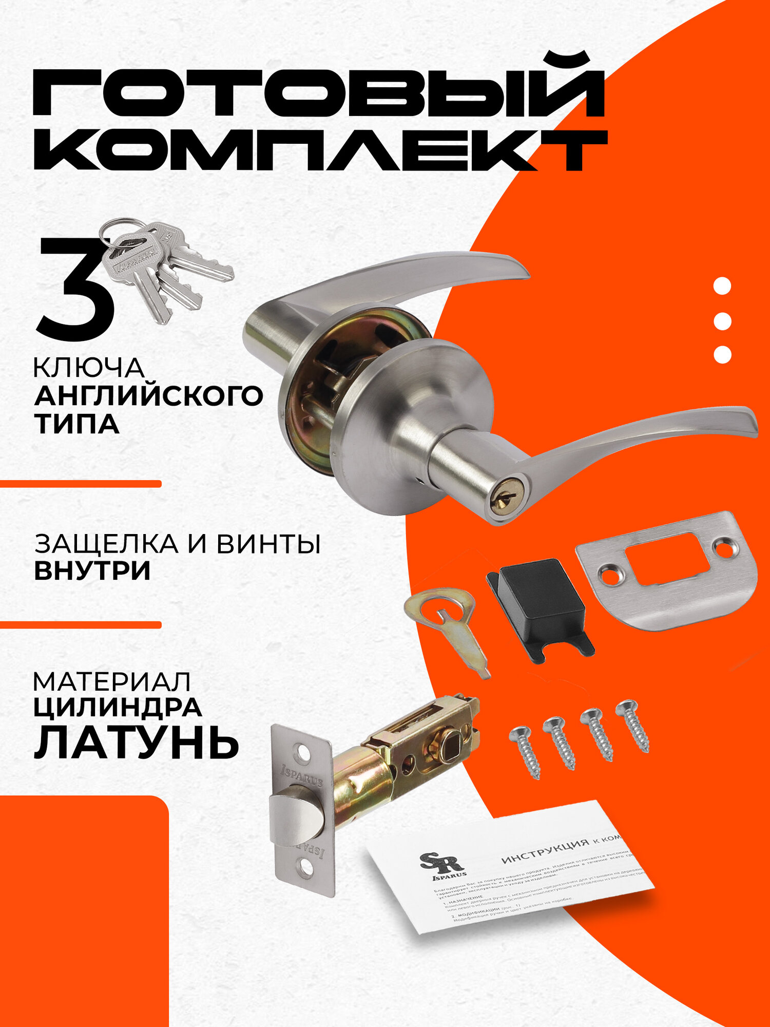 Ручка-защелка нора-м ISPARUS ЗВ2-01, нажимная, межкомнатная, ключ/фиксатор, матовый никель