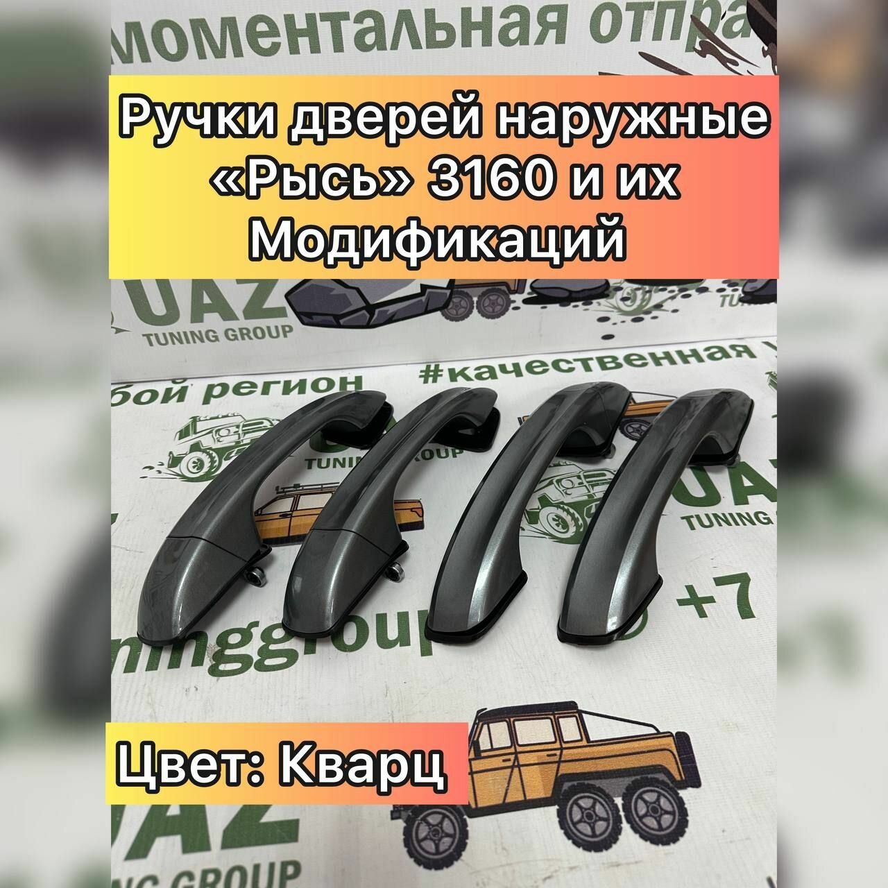 Ручки дверей для УАЗ 3163 Патриот, 2363 Пикап наружные кварц (серебристо серый металлик) (комплект 4 шт.) «Рысь»: сравнение цен, характеристики, фото, актуальное наличие и цены.
