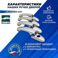 Цена указана за комплект Ручки дверей Лада Гранта, Гранта ФЛ, Калина, Калина 2 передние задние, на левую правую сторону Тюн-Авто дверные окрашенные в цвет Платина (691), евроручки комплект 4шт.