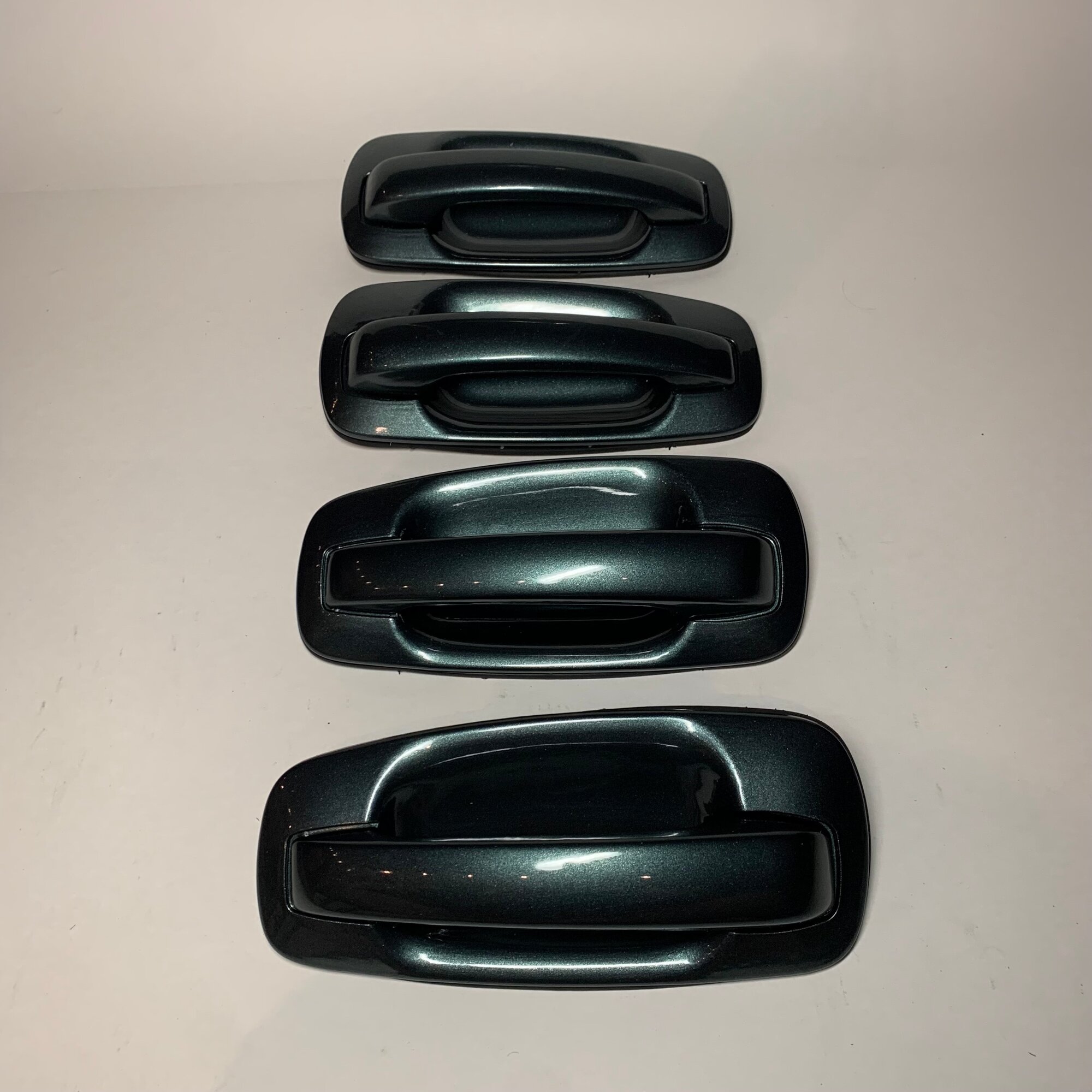 Ручки дверей окрашены в цвет Сочи (360), который сочетает в себе зеленый и серый оттенки. В комплект входят 4 ручки: 2 передние (левая и правая) и 2 задние (левая и правая).