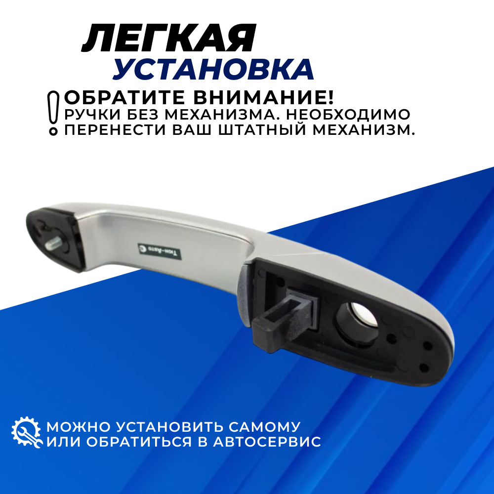 Ручки двери Лада Гранта устанавливаются на штатные места, корпус ручки для усиления крепления можно промазать герметиком, но в комплекте идут резиновые прокладки, которые устанавливаются между ручкой и дверью. Надёжное крепление ручек двери Лада Гранта гарантирует долгий срок службы. Ручки двери Лада Гранта улучшают внешний вид автомобиля по сравнению со штатными ручками. Установка не требует особых усилий и навыков.