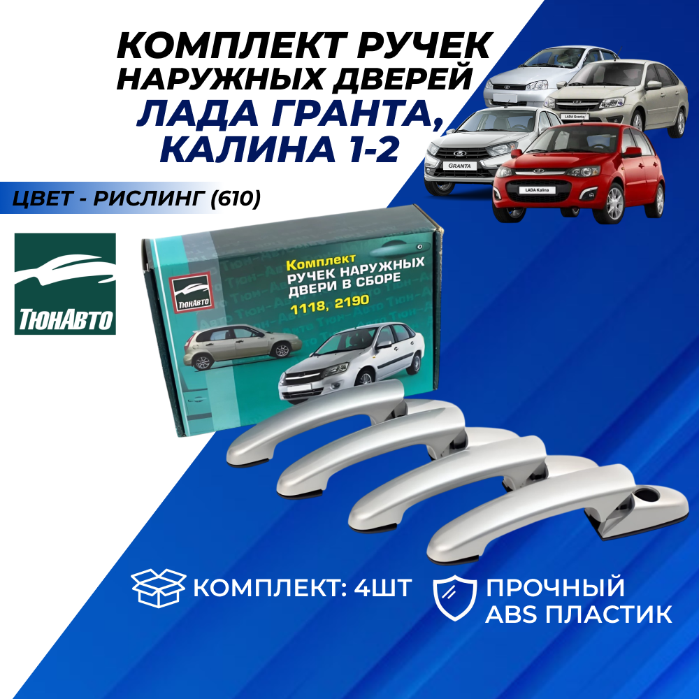 Ручки двери Лада Гранта, Гранта ФЛ, Калина, Калина 2 передние задние, на левую правую сторону Тюн-Авто дверные окрашенные в цвет Рислинг (610), евроручки комплект 4шт.