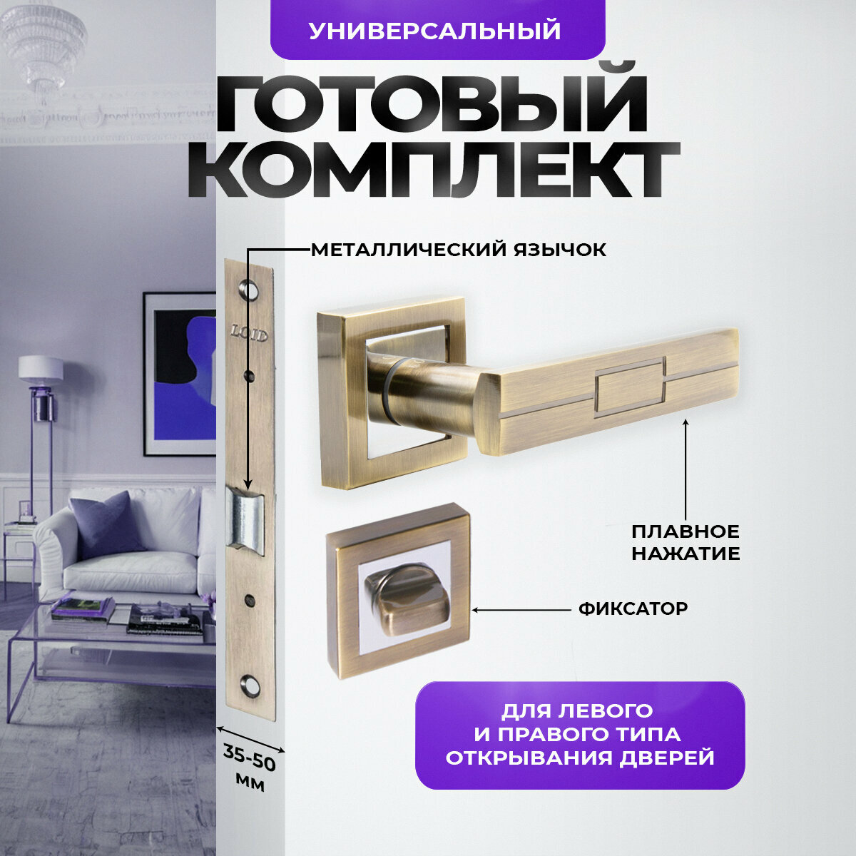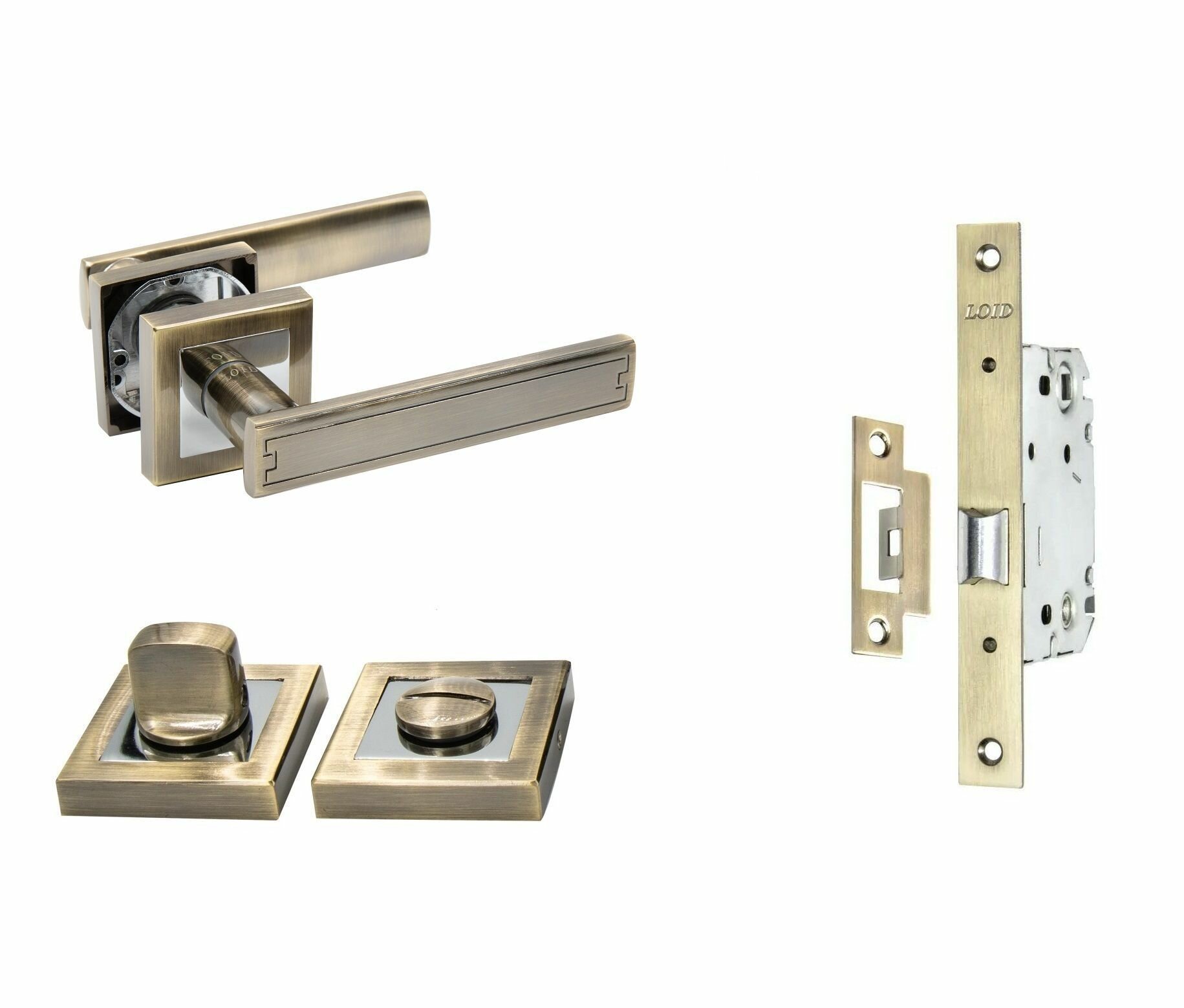 Ручка дверная межкомнатная с защелкой и фиксатором, античная бронза Loid 450 AB + замок M-2055 B AB + завертка квадратная AB: сравнение цен, характеристики, фото, актуальное наличие и цены.