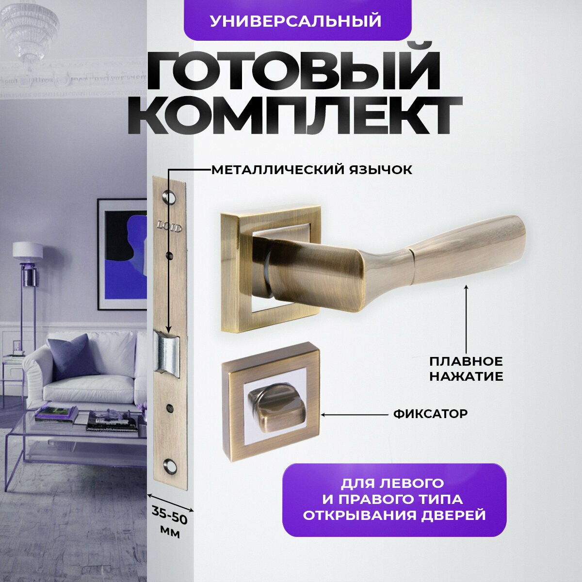 Ручка дверная межкомнатная с защелкой и фиксатором, античная бронза Loid 470 AB + замок M-2055 B AB + завертка квадратная AB: сравнение цен, характеристики, фото, актуальное наличие и цены.