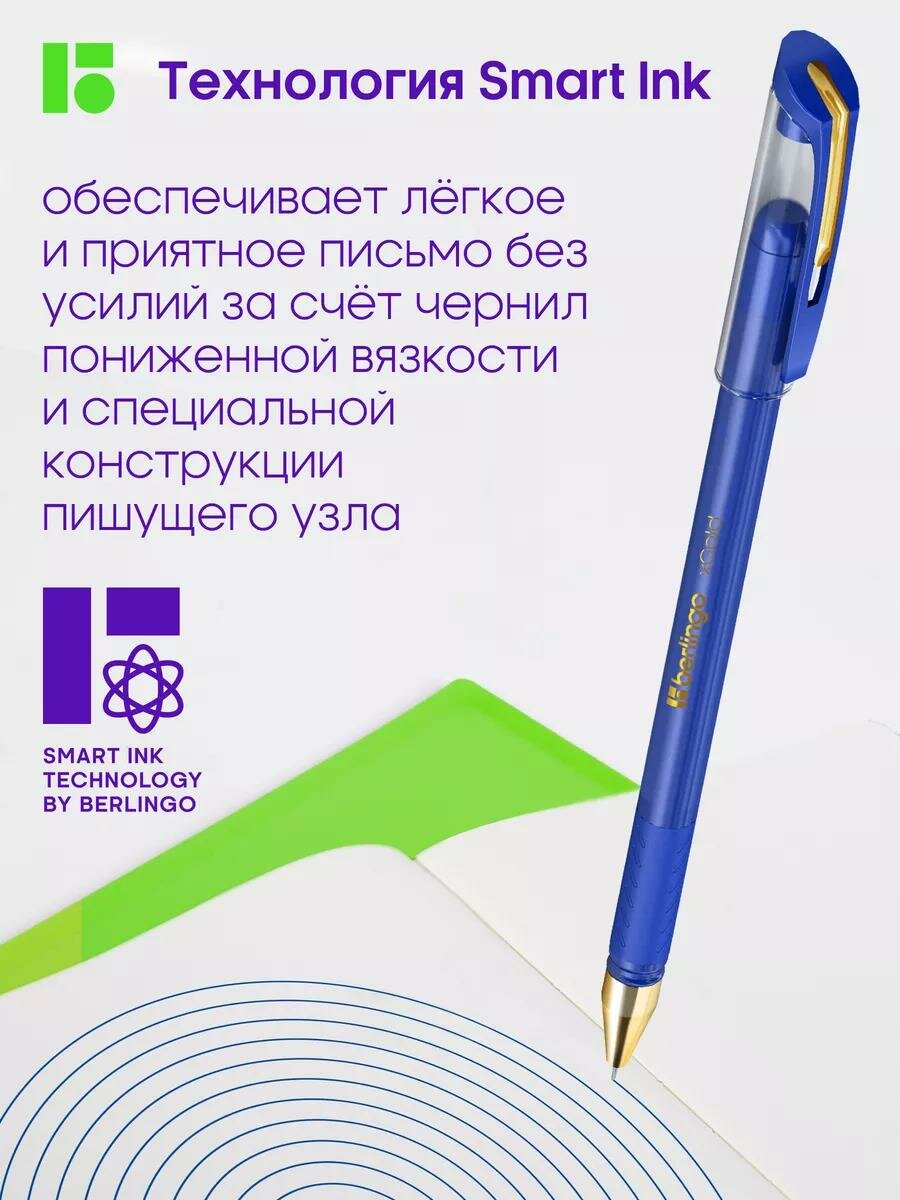 Легендарная шариковая ручка xGold- это флагманская модель ассортимента Berlingo. Не раз становилась официальной ручкой «Тотального диктанта» – ежегодной образовательной акции популяризации грамотности. Кроме того, является обладателем премии «Выбор канцелярского рынка 2018». Набор состоит из 12 синих ручек. На круглом корпусе изящно выгравирован логотип и серия бренда, а золотистые детали прекрасно гармонируют с синим цветом. Удобный пластиковый клип позволяет закрепить изделие там, где это необходимо. Мягкий резиновый грип в зоне захвата препятствует скольжению в пальцах и способствует дополнительному удобству и комфорту, а вентилируемый колпачок обеспечивает безопасность при использовании детьми. Высококачественные чернила на масляной основе гарантируют четкое, ровное и мягкое письмо. Шариковые ручки многоразовые, они имеют возможность замены стержня. Длина письма составляет 850 м, а толщина линии 0,5 мм. Диаметр пишущего узла - 0,7 мм. На каждом этапе производства канцтоваров Берлинго внедрены новейшие технологии, а все продукты проходят тщательное исследование, техническую разработку, тестирование и контроль качества. Уникальная запатентованная технология Smart Ink обеспечивает лёгкое и приятное письмо без усилий за счёт чернил пониженной вязкости, специальной конструкции пишущего узла и инновационных материалов шарика. Оригинальные ручки xGold прекрасно подойдут для использования в школе, офисе, университете, помогут справиться со сложной каллиграфией и чистописанием.