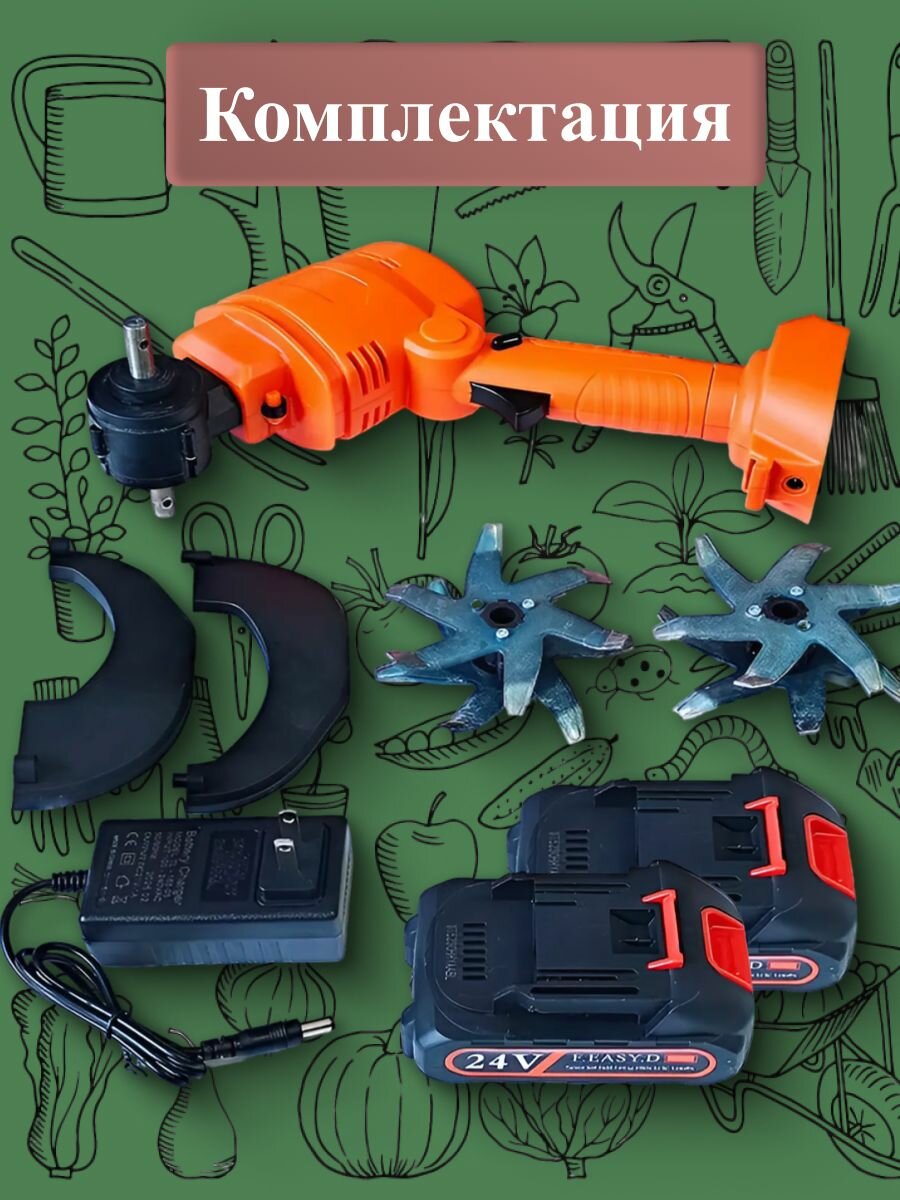 Купить Ручная электротяпка с 2 аккумуляторами для кошения, прополки, вспашки и рыхления почвы. с доставкой по всей России.