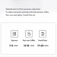 Конструкция шлифовальной машины TIMEMORE C3 проста и интуитивно понятна, проста в использовании и настройке. Просто поверните ручку и выберите желаемый размер шлифовки, чтобы начать. Размер измельчения может быть скорректирован от мелкого до грубого и подходит для различных методов заваривания, таких как концентрированный кофе, французское прессование и сброс.