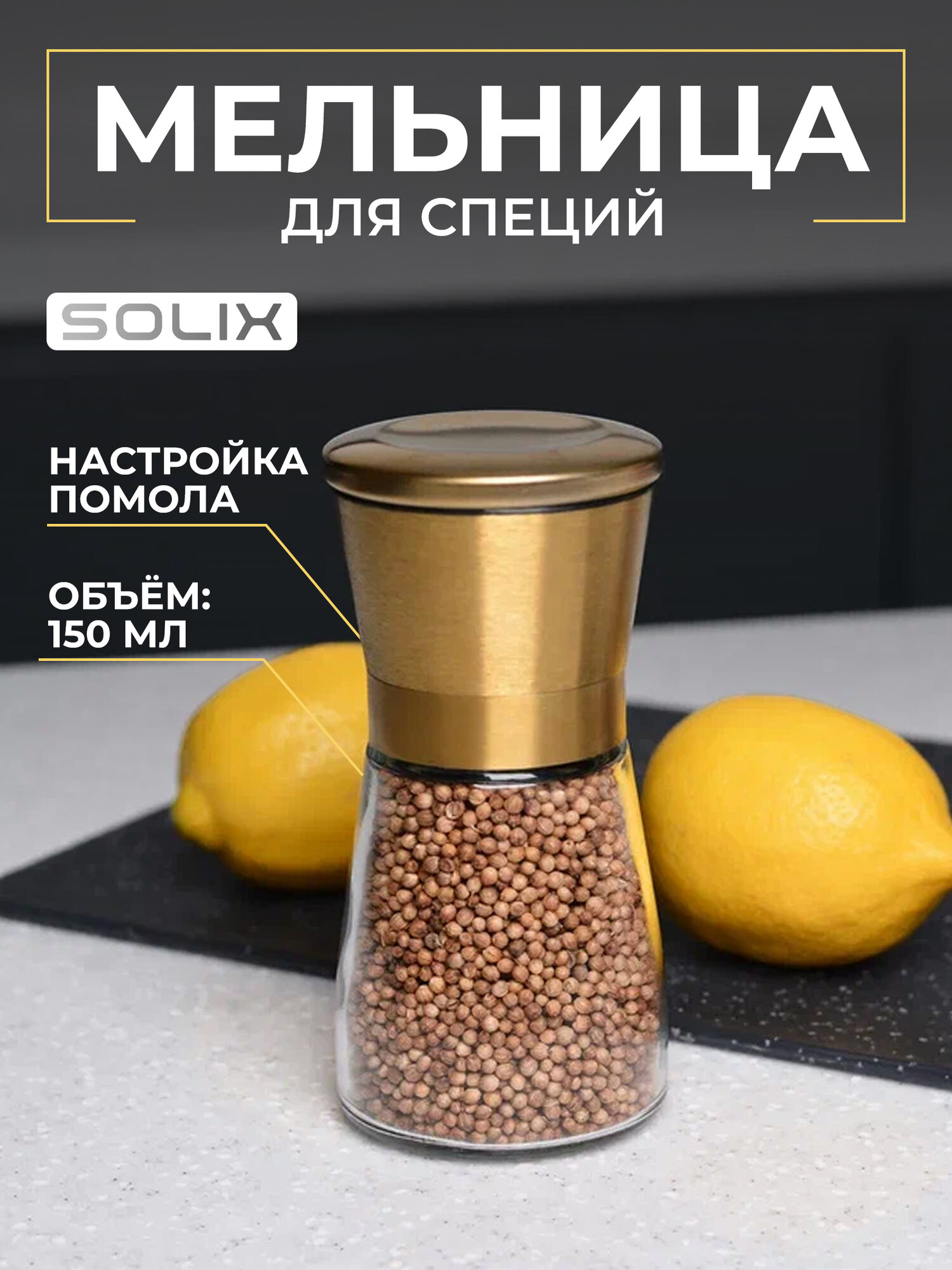 Купить Ручная мельница для перца, соли и специй с крышкой SOLIX, 150мл, стекло, керамика, металл, золотой 1шт. с доставкой по всей России. Ручная мельница для перца, соли и специй с крышкой SOLIX, 150мл, стекло, керамика, металл, золотой 1шт.: сравнение цен, характеристики, фото, актуальное наличие и цены.