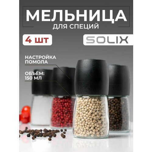 Купить Ручная мельница для перца, соли и специй SOLIX, 150мл, стекло, керамика, пластик, 4шт. с доставкой по всей России. Ручная мельница для перца, соли и специй SOLIX, 150мл, стекло, керамика, пластик, 4шт.: сравнение цен, характеристики, фото, актуальное наличие и цены.