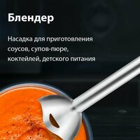 | Насадки | венчик для взбивания, для приготовления пюре, измельчитель, мельничка, насадка для шинковки, соковыжималка |