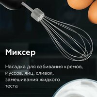 | Насадки | венчик для взбивания, для приготовления пюре, измельчитель, мельничка, соковыжималка |