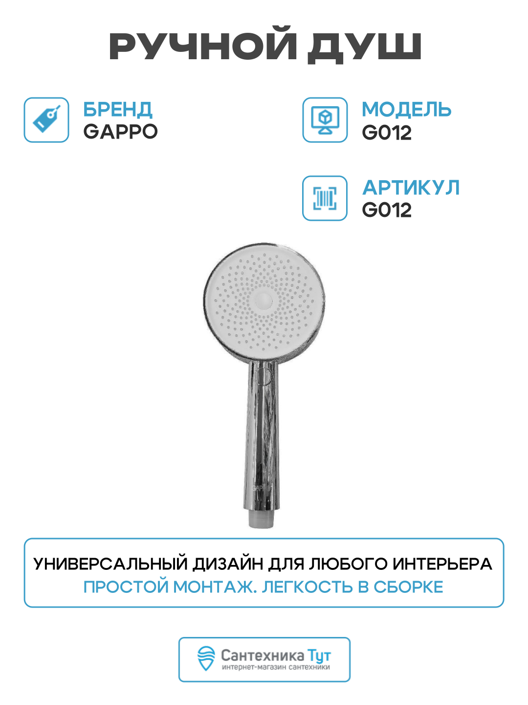 Ручной душ Gappo G012 Хром: сравнение цен, характеристики, фото, актуальное наличие и цены.