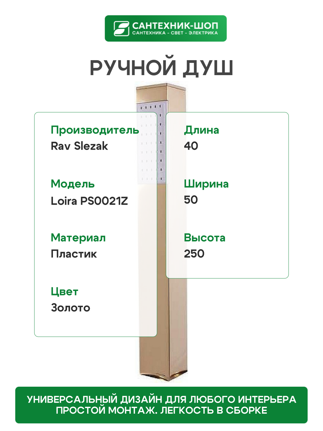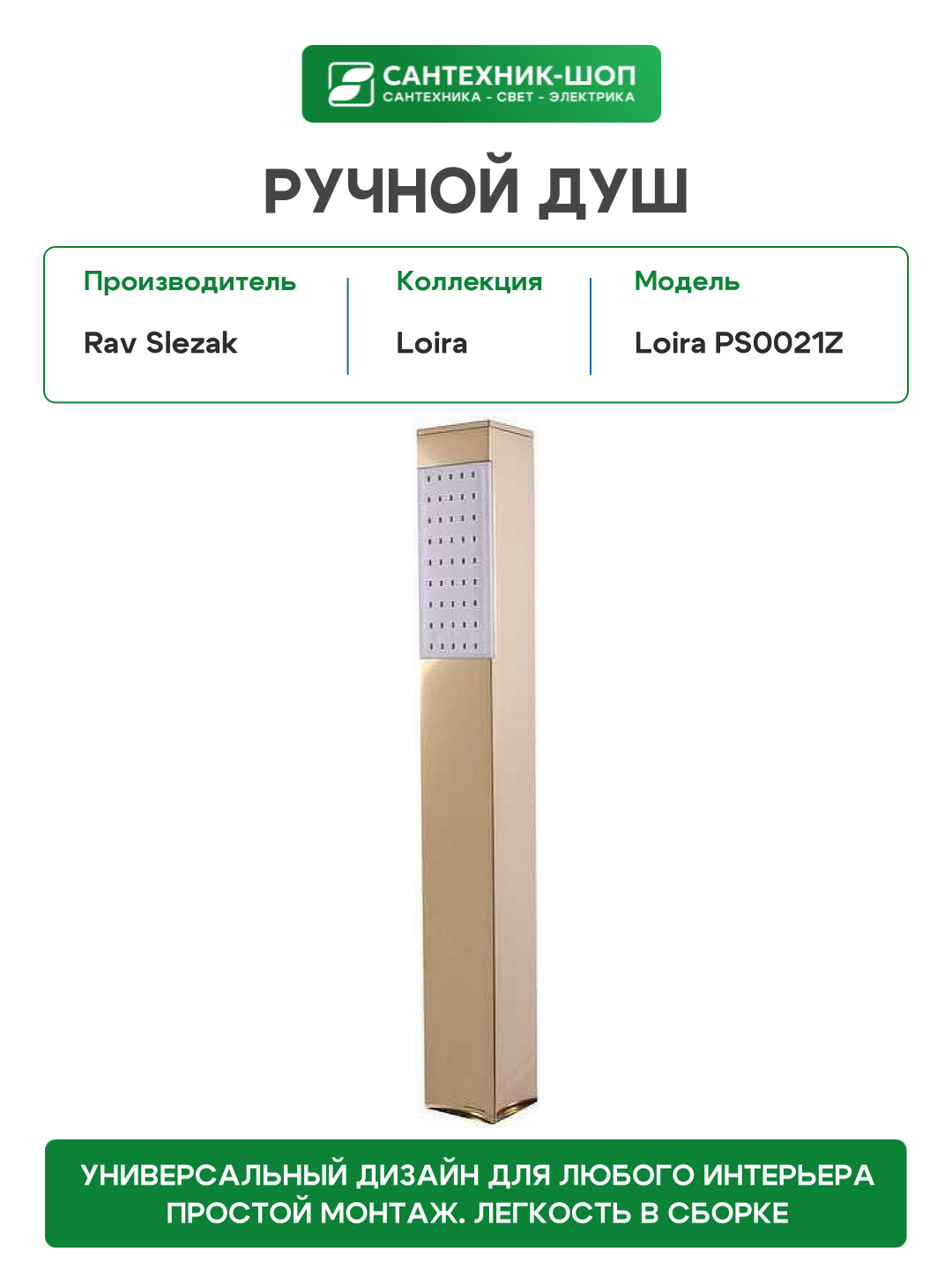 Ручной душ Rav Slezak Loira PS0021Z Золото: сравнение цен, характеристики, фото, актуальное наличие и цены.