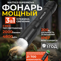 Ручной фонарь тактический аккумуляторный 2000 люмен Wattico Supernova подствольный на оружие с зумом, подарок охотнику на 23 февраля: сравнение цен, характеристики, фото, актуальное наличие и цены.