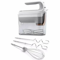 Эргономичная ручка. Открытая ручка., Все компоненты легко разбираются. Можно мыть в посудомоечной машине. Технология HeatSoft использует мягкое тепло для нагрева холодных ингредиентов до комнатной температуры во время смешивания., Для замешивания, Для взбивания, Для замешивания теста.
