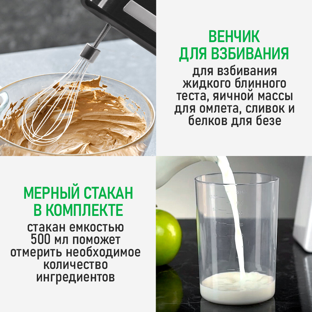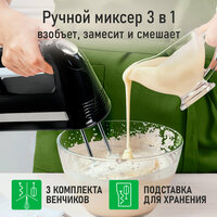 | Насадки | венчик для взбивания, крючки для замешивания теста, насадка для приготовления пюре |