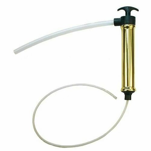 Ручной насос для откачки масла (10006068). Ручной самовсасывающий поршневой насос для перекачки масла. Значительно облегчает смену масла в случаях затрудненного доступа к сливной пробке картера. Используя этот насос, можно легко откачать отработанное масло через отверстие масляного щупа или заправочную горловину (выбор варианта зависит от конструкции конкретного двигателя) прямо в канистру для "отработки" или другую под ходящую емкость, не пролив при этом ни капли масла в трюм. Кроме того, насос облегчает заправку маслом труднодоступных механизмов или меха низмов с неудобно расположенными заливными отверстиями. Также можно использовать для откачки трюмной воды и иных неагрессивных жидкостей. Размеры (диаметр х длина): 8*700 мм (заборный шланг), 11*250 мм (сливной шланг). Производители: "ТМС", Тайвань.