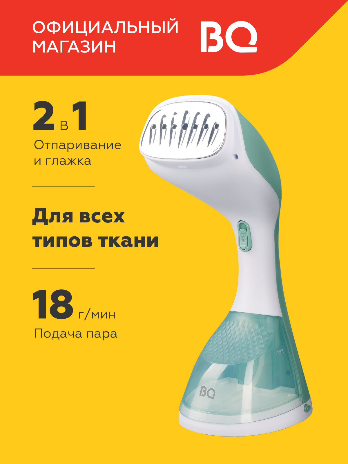 Ручной отпариватель BQ SG1003H Бело-бирюзовый / Подача пара 18 г/мин / Время нагрева 40 сек: сравнение цен, характеристики, фото, актуальное наличие и цены.