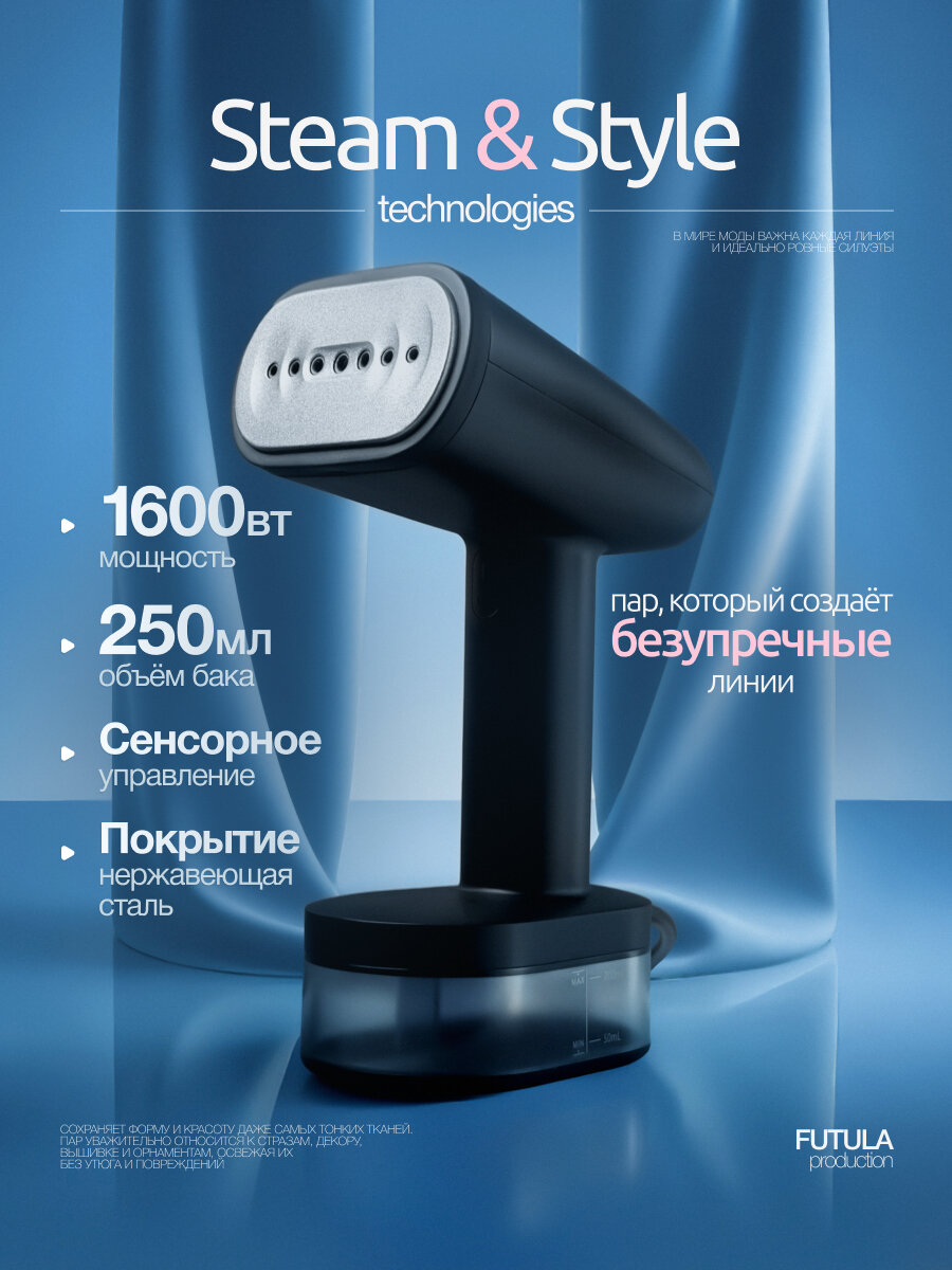Ручной отпариватель для одежды Futula ST2300 черный, мощность 1600 ВТ