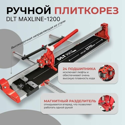 - Отличительная характеристика плиткорезов DLT MAXLINE - особое, устройство направляющей каретки, которая охватывает монорельс с четырех сторон и передвигается посредствам шарикоподшипникового механизма который состоит их 24 подшипника, что исключает люфты и обеспечивает очень высокую плавность хода.