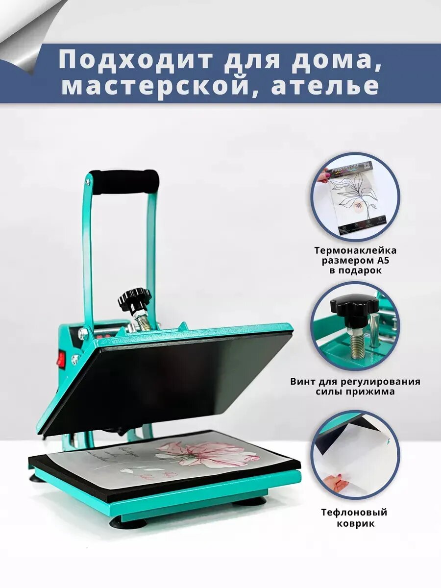 Термопресс имеет керамическую плиту размером 21х30, благодаря чему можно перенести надпись или изображение стандартного размера А4 за один раз, что значительно экономит время. Для швей термопресс станет палочкой-выручалочкой при дублировании ткани. Благодаря равномерному нагреву, по всей поверхности плиты, дублерин приклеивается равномерно, быстро и надежно.