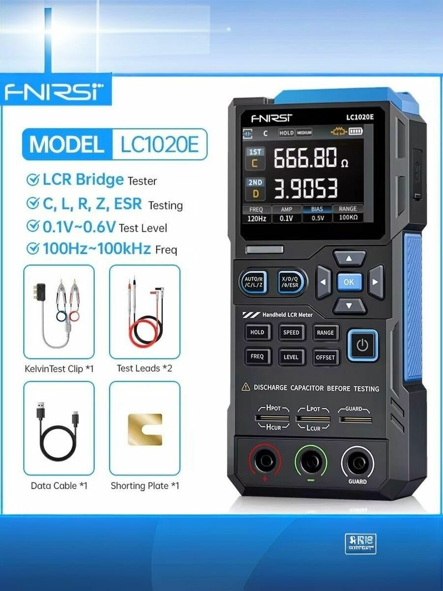Ручной цифровой мостовой LCR-измеритель FNIRSI LC1020E с автоматическим диапазоном индуктивности, емкости, сопротивления: сравнение цен, характеристики, фото, актуальное наличие и цены.