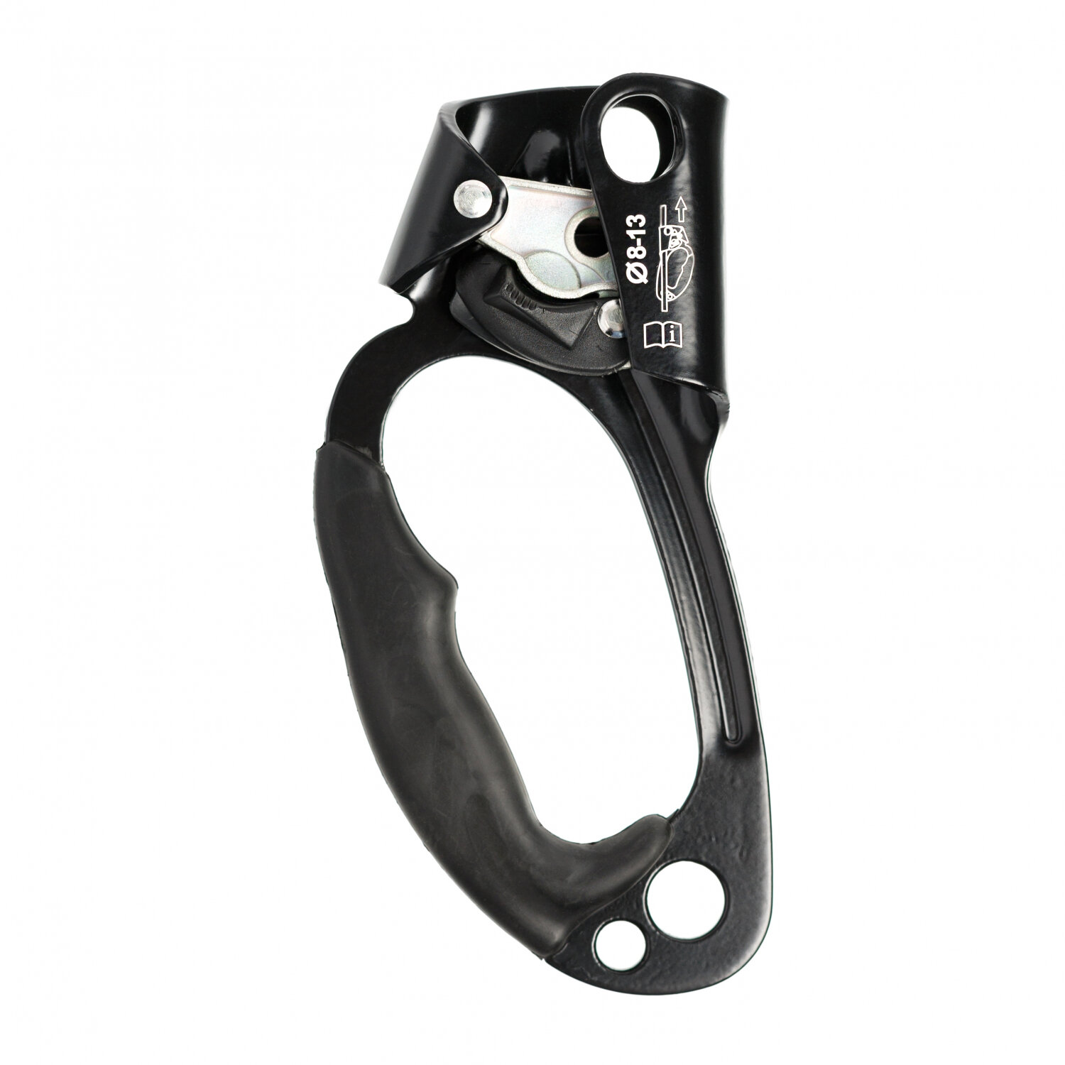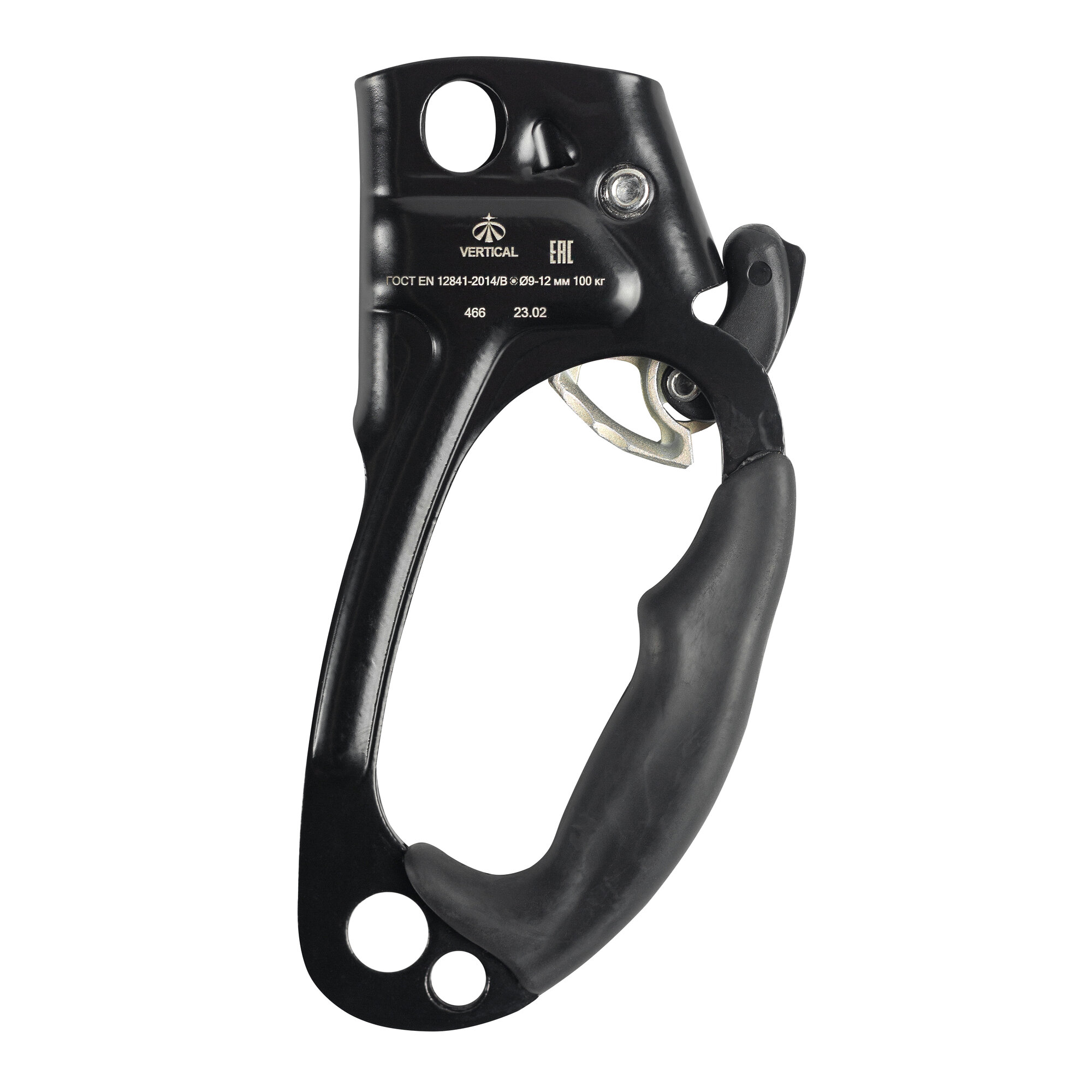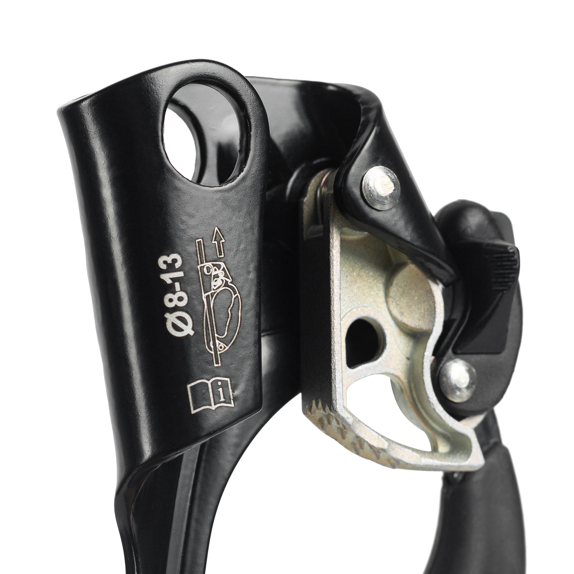 Зажим Жумар предназначен для подъема по веревке и самостраховке, натягивании перил и наведении полиспастов, подъема грузов и для спасательных работ. Эргономичная форма ручки, покрытая резиной, обеспечивает удобство в работе и термоизоляцию. Конструкция кулачка имеет канавку, обеспечивающую самоочищение от влаги, льда и грязи. Работает с веревкой Ø 8-12 мм.