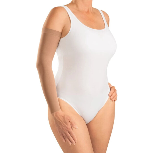 Компрессионный рукав Mediven Harmony закрывает руку до запястья и рекомендуется для пациентов, которым требуется профилактическая компрессия в этой области.