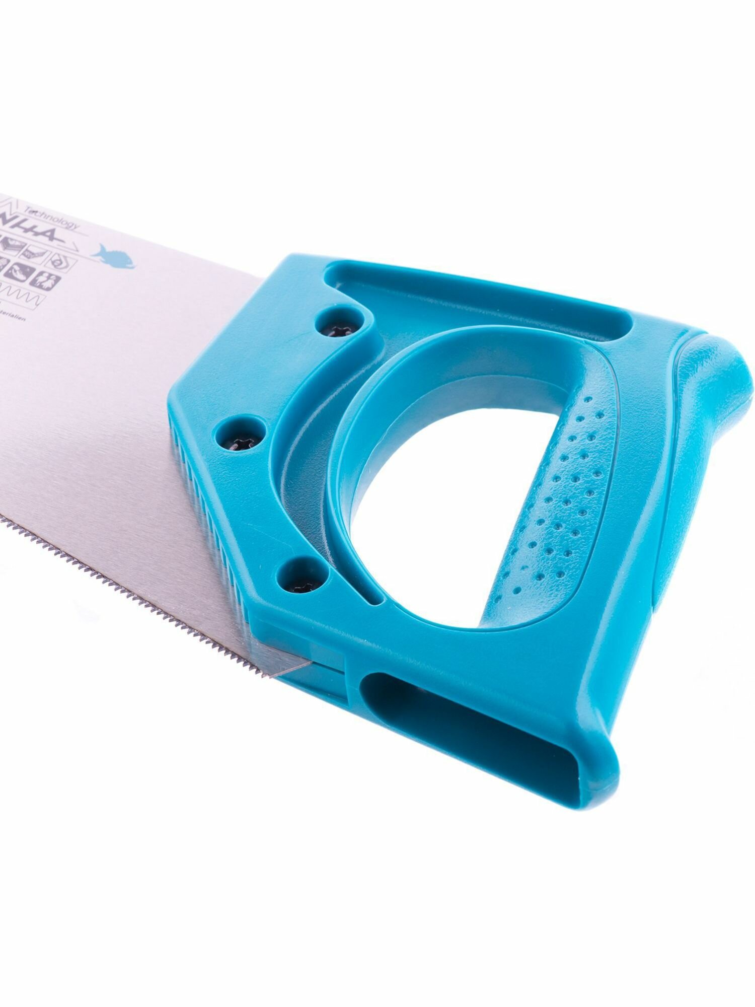 Ножовка "PIRANHA" торговой марки GROSS предназначена для столярных работ как с древесными композитными материалами (ламинатом, ДСП, ДВП, МДФ), так и с синтетическими (пенополистиролом, полиуретаном и пр). Полотно ножовки длиной 360 мм изготовлено из японской стали SK-5. Поверхность полотна обработана антикоррозийным полимерным покрытием. Зубья ножовки имеют трехгранную заточку, что позволяет работать максимально качественно и с высокой скоростью. Двухкомпонентная рукоятка ножовки изготовлена из ударопрочного пластика, а эргономичная форма делает ее комфортной для рук даже при интенсивном пилении.