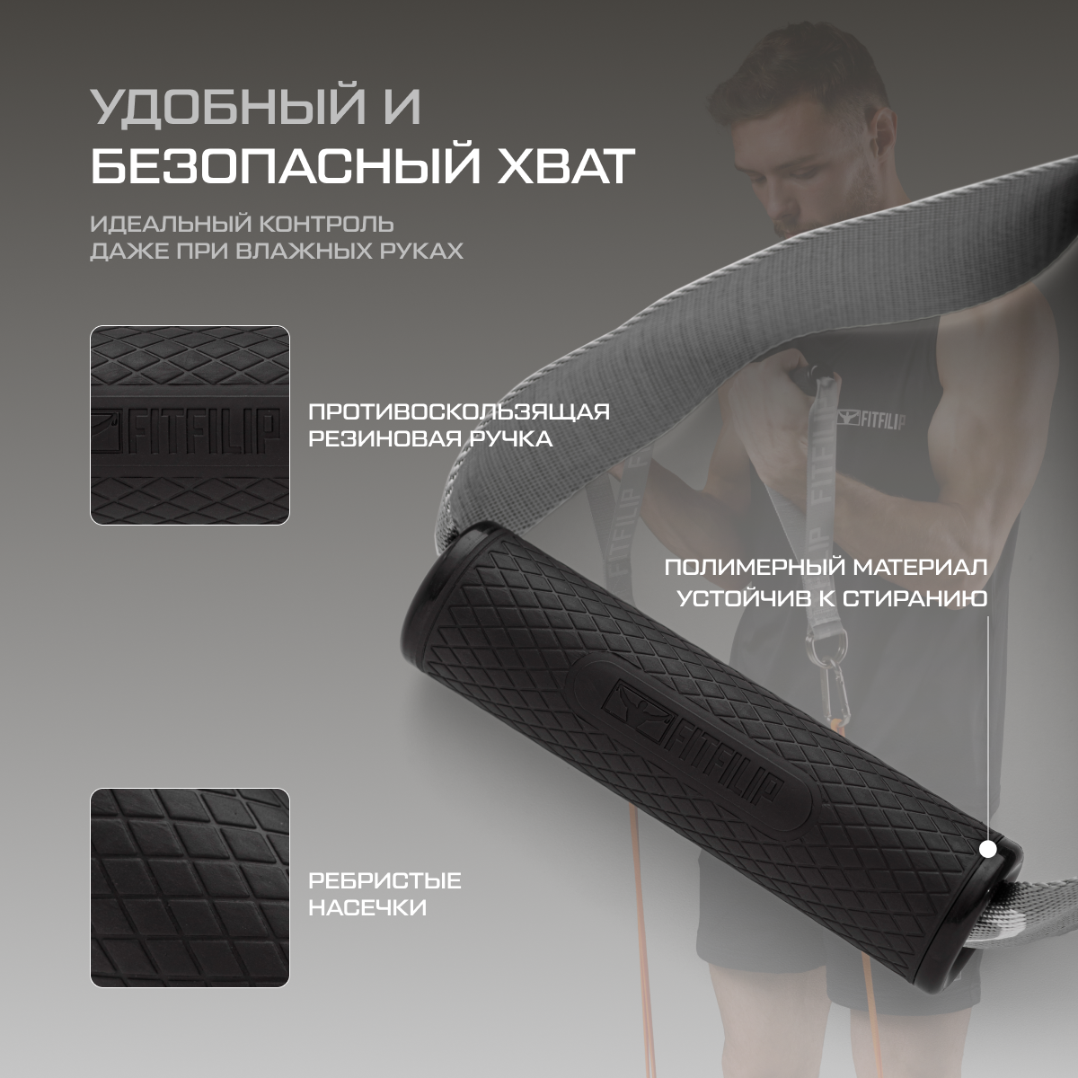 Универсальные рукоятки FITFILIP с кольцами - это набор из двух качественных рукояток, которые непременно следует купить любителям фитнеса и всем, кто регулярно посещает спортивные залы. Рукоятки совместимы с любым оборудованием компании FITFILIP длинными фитнес резинками, трубчатыми эспандерами, стропами. Они помогут обеспечить хороший захват троса на стационарных атлетических тренажерах. Надёжность рукояток обеспечивается современными материалами, качественной сборкой и хорошей конструкцией. Изделие состоит из таких частей: ручки трубчатой формы из прочного полимера с комфортной прорезиненной поверхностью; стропа, изготовленного из синтетической прочной ленты; двух металлических полуколец на каждой ручке, выполненных из стального прута толщиной 6 мм, покрытого хромом и лаком. Длина ручки 13 см, диаметр ручки 3,5 см, длина стропа 22 см, ширина стропа 3,8 см; ширина кольца (внутр.) – 4 см, вес всего набора – 500 гр. В комплект входят 2 карабина по 8 см, рукоятки 2 шт и каждый покупатель получает фирменную сумочку. В линейке продукции FITFILIP имеется подобная рукоятка, однако, она отличается наличием одного вшитого соединительного карабина. Модель с кольцами и дополнительными карабинами в комплекте имеет больше вариантов соединения с элементами спортивного оборудования. Наличие металлических колец позволяет пристегнуть ручки к любому спортивному оборудованию, уже имеющему карабины. Это могут быть трубчатые эспандеры или концы тросов блочных тренажеров кроссовер. Учитывая, что кольца шире чем карабин, а их два, количество присоединяемых элементов может быть существенно увеличено. Так, имея в наличии набор экпандеров с разной величиной сопротивления, можно быстро регулировать нагрузку. К кольцам можно пристёгивать длинные фитнес резинки удавкой или через карабин. Количество резинок может варьироваться на усмотрение спортсмена. Рукоятки хорошо использовать вместе со стропами для подтягивания. Любые упражнения в висе на рукоятках будут более эффективными и комфортными, ведь появляется возможность изменять угол поворота кисти. Купив рукоятки, можно быстро и не дорого оборудовать самодельные подвесные ремни, заняться йогой или стретчингом. Размеры ручки рассчитаны оптимально для широкого круга пользователей. Для расчётов использовалась средняя величина ладони человека, однако, такую ручку одинаково удобно держать как маленькой женской рукой, так и достаточно крупной мужской. Одна рукоятка выдерживает нагрузку в 300 кг. Рукоятки для тяги handles grip подходят на резиновые петли, эластичные ленты, борцовские жгуты. Рукоятку можно крепить за один конец фитнес резинки или resistance bands, а противоположный край можно зафиксировать посредством дверного якорного крепления, дверной фиксатор для домашних тренировок можно приобрести в нашем магазине. Идеально подходят для профессионалов где используется мягкая тяга на трицепс, рукоять легко перемещается и меняет нужный угол, новичкам или любителям тренировок дома, атлетам, для бодибилдинга, армрестлинг, боксёрам, для лечебной оздоровительной физкультуры, ЛФК, кинезитерапии, для восстановления после травм опорно-двигательных аппаратов. Подходят для тренировок на развитие силы, выносливости и мобильности. Такие рукоятки - это надежный помощник в достижении поставленных целей!