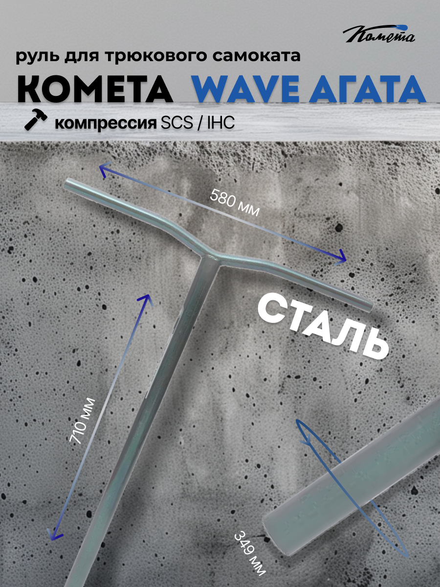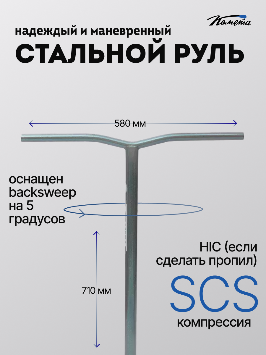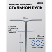 Руль для трюкового самоката Комета Wave Oversize изготовлен из высококачественной стали марки 35ХГСА. Такой материал обеспечивает превосходную прочность, долговечность и устойчивость к механическим нагрузкам при выполнении трюков. Внутренний диаметр руля - 31,8мм, внешний диаметр руля - 34,9 мм, а значит он подходит под системы компрессии SCS (С проставкой) и HIC (Если сделать пропил). Руль имеет высоту 71 см и ширину 58 см. Покрытие из высококачественного лака (кроме Рэтлук) обеспечивает устойчивость к коррозии, а также имеет стильный и привлекательный внешний вид. Руль имеет небольшую загнутость ручки руля (backsweep 5°), что обеспечивает повышенный комфорт при катании. Если вы ищете руль, который будет надежным партнером в ваших трюковых приключениях, то руль от Кометы станет отличным выбором! Рули поставляются без пропила. Вес: 1,25кг Размер упаковки: 66,5/81/5,5 Вес в упаковке: 1,35кг