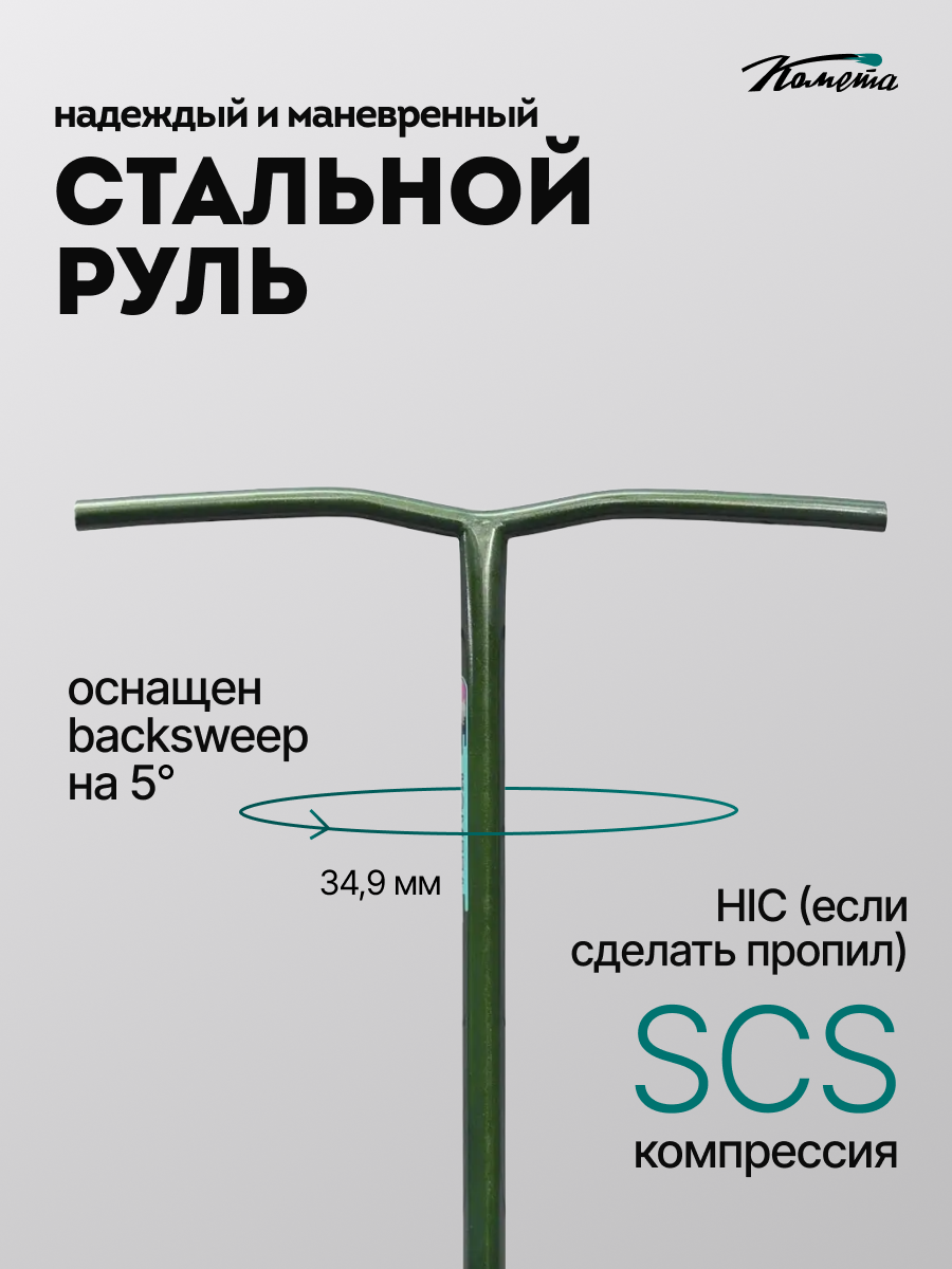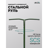 Руль для трюкового самоката Комета Wave Oversize изготовлен из высококачественной стали марки 35ХГСА. Такой материал обеспечивает превосходную прочность, долговечность и устойчивость к механическим нагрузкам при выполнении трюков. Диаметр руля - 34,9 мм, а значит он подходит под системы компрессии SCS (С проставкой) и HIC (Если сделать пропил). Руль имеет высоту 71 см и ширину 58 см. Покрытие из высококачественного лака обеспечивает устойчивость к коррозии, а также имеет стильный и привлекательный внешний вид. Руль имеет небольшую загнутость ручки руля (backsweep 5°), что обеспечивает повышенный комфорт при катании. Если вы ищете руль, который будет надежным партнером в ваших трюковых приключениях, то руль от Кометы станет отличным выбором! Рули поставляются без пропила.