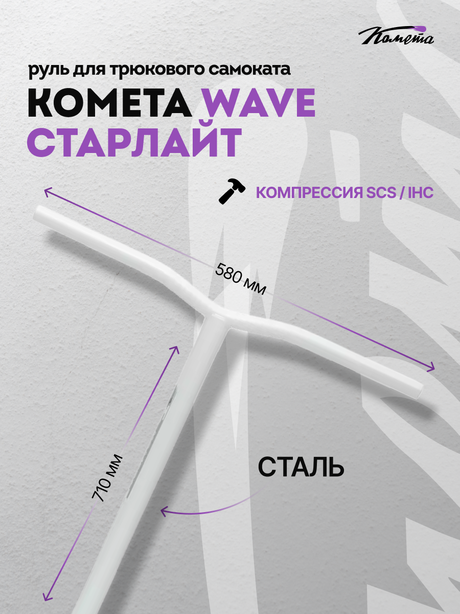 Руль для трюкового самоката SCS / HIC Комета Wave Oversize 34,9 Старлайт (белый) (Backsweep 5): сравнение цен, характеристики, фото, актуальное наличие и цены.