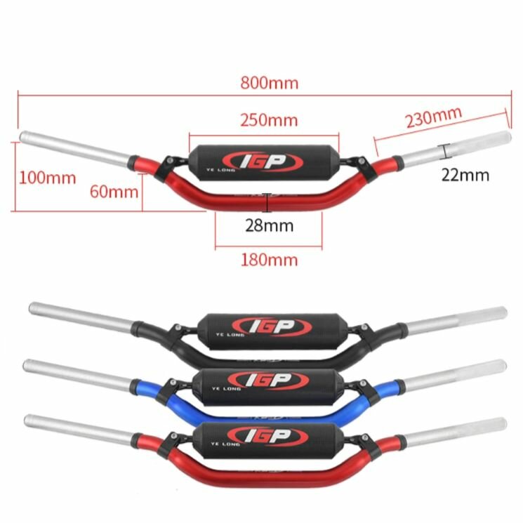 1. Алюминиевый , усиленный руль , диаметр области зажима- 1-1/8 28 мм мм для значительно улучшенной прочности, Диаметр руля в районе грипс 22 мм.