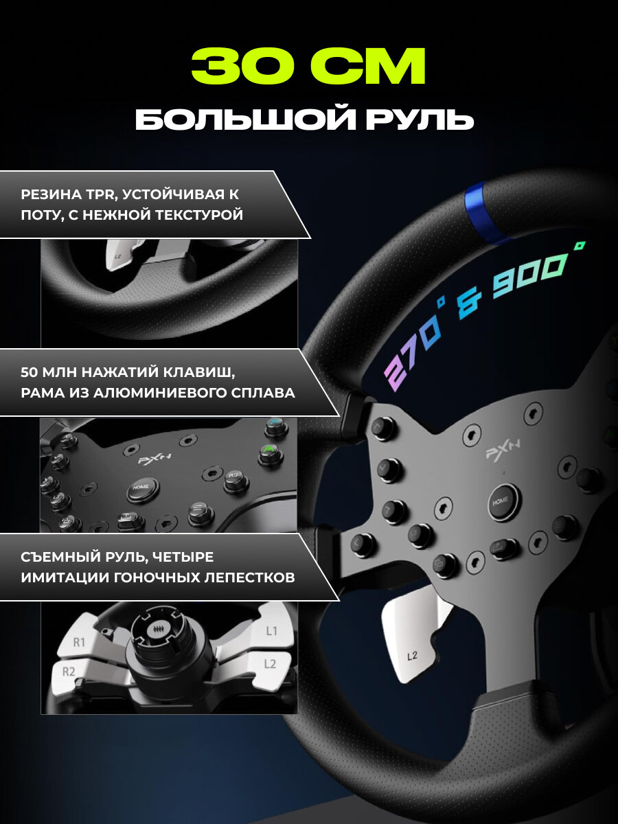 Руль игровой PXN V99 для ПК с педалями и коробкой передач, 900 градусов, совместим с PS3, PS4, Xbox One/X/S и Switch: сравнение цен, характеристики, фото, актуальное наличие и цены.