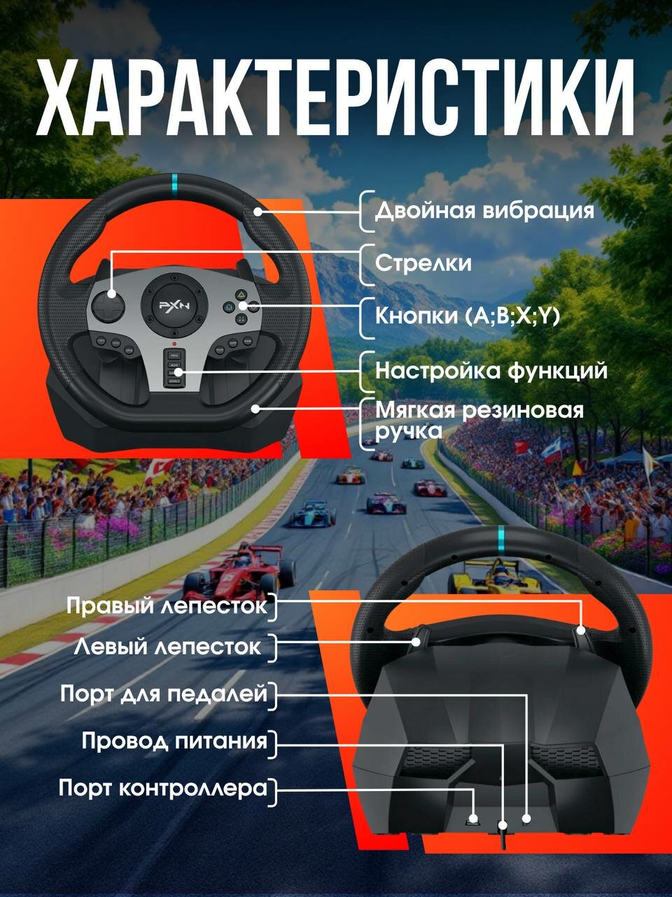 Руль игровой с педалями PXN V9 (900 градусов) для PC/PS4/Xbox One/Xbox Series X и S: сравнение цен, характеристики, фото, актуальное наличие и цены.