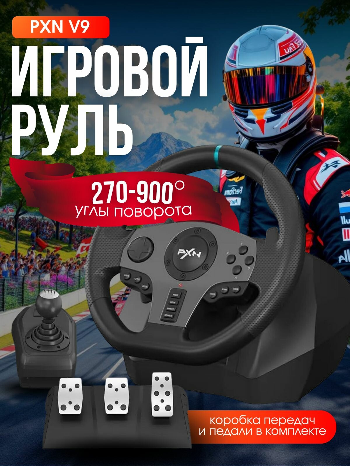 Купить Руль игровой с педалями PXN V9 Gen2(900 градусов) для PC/PS4/Xbox One/Xbox Series X и S с доставкой по всей России.