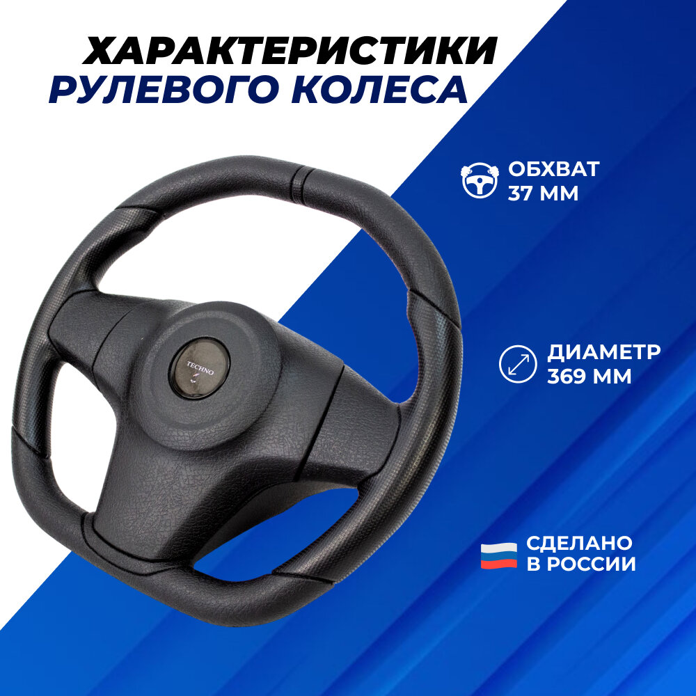 Трехспицевый руль благодаря своей форме и размерам идеально впишется в рулевую колонку автомобиля Приора, Гранта, Калина, 2110. Одно из ключевых преимуществ Travel Sport - руль полностью повторяет форму спортивного руля, имеет скос внизу и скос в верхней части. Оплетка имитирует кожу. В центре руля значок: эмблема Techno
