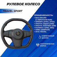Рулевое колесо Лада Приора анатомический Travel Sport эмблема Techno на Lada Priora, Гранта, Калина 2, 2110 с европанелью, Нива Шевроле, Niva Travel- стильный и функциональный руль придаст автомобилю неповторимый вид и обновит интерьер. Автомобильный руль в спортивном стиле специально разработан для Lada Priora, Гранта, Калина 2, 2110. Устанавливается в штатное место, без доработок.