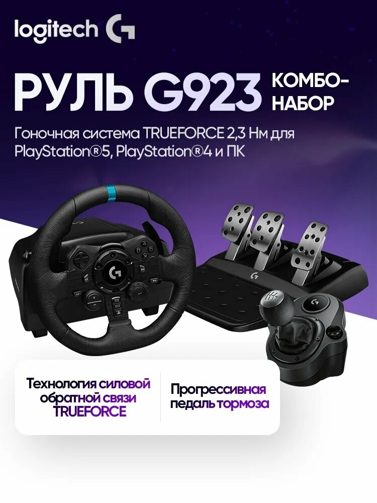 Руль Logitech G923 Trueforce с углом поворота 900° оснащен LED-индикатором оборотов двигателя, геймпадом с крестовиной и двумя подрулевыми переключателями, что обеспечивает удобство игрового процесса. Реалистичность управления достигается звуковым сопровождением в виде вибрации и двумя режимами - ручным и автоматическим. Высококачественная кожаная оплетка гарантирует комфортную эксплуатацию.