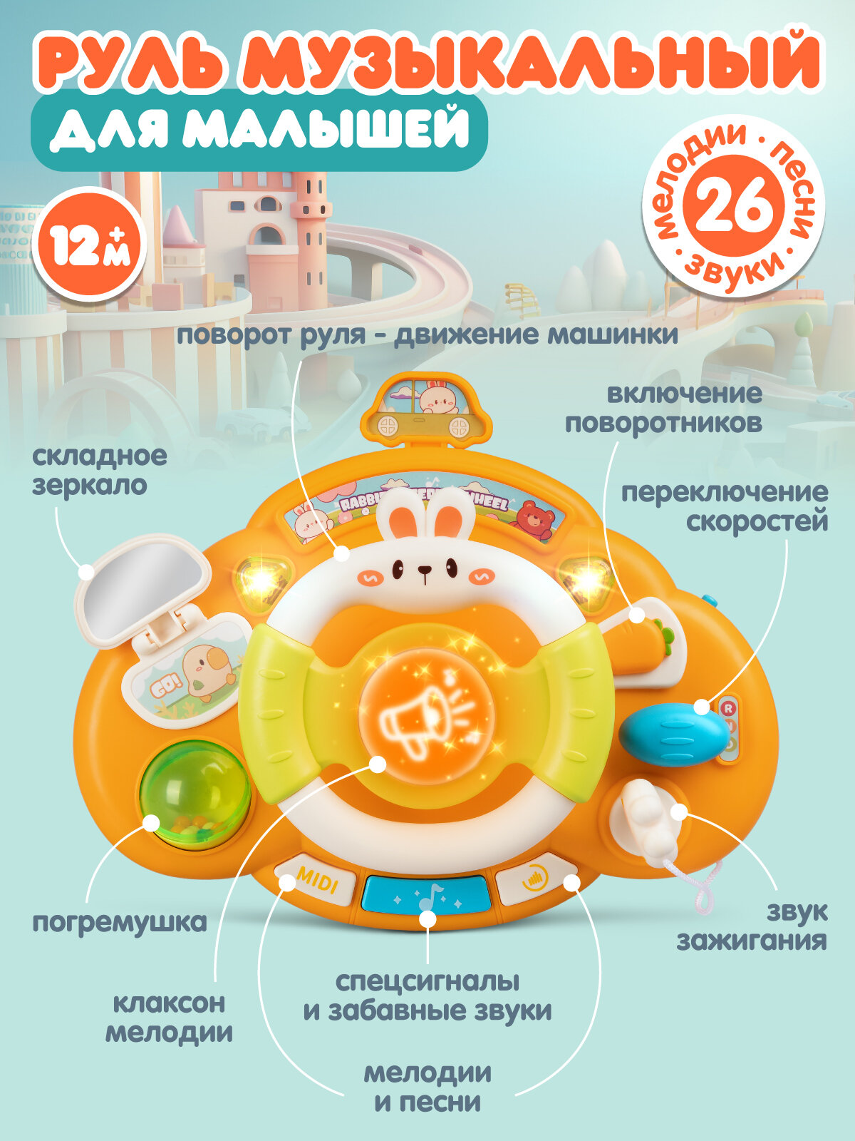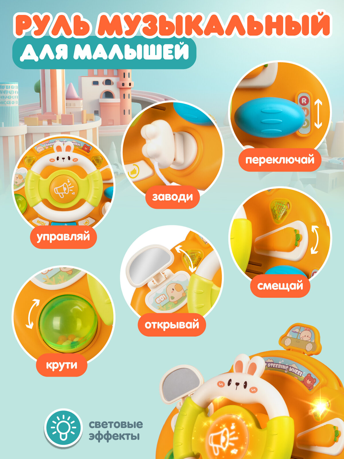 Руль музыкальный, развивающая игрушка, свет, звук, JB0334282: сравнение цен, характеристики, фото, актуальное наличие и цены.