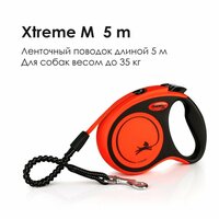 Купить Поводок — рулетка для собак Flexi Xtreme M, лента 5м, до 35 кг, черно-оранжевая с доставкой по всей России.