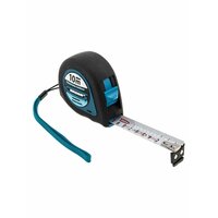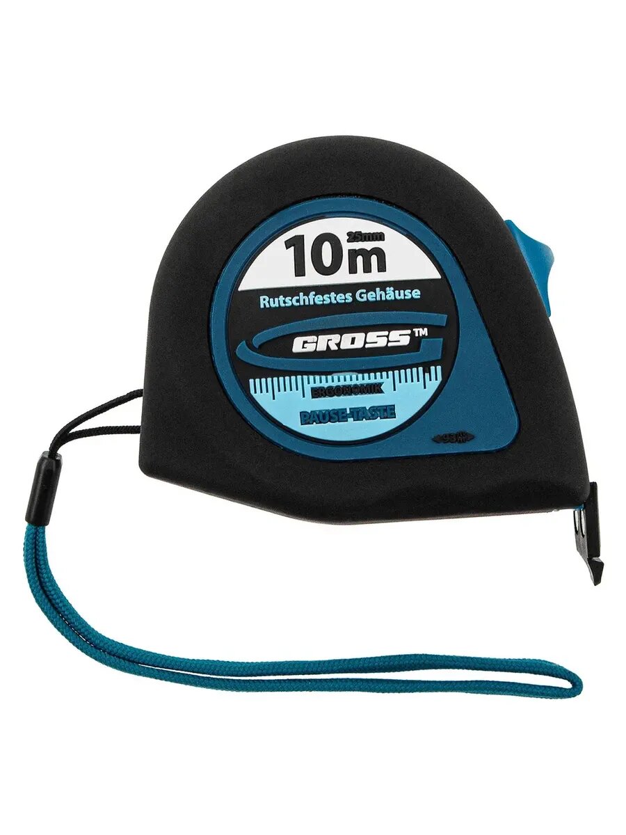 Рулетка Gross «Ergonomisch» 31105 с лентой 10 м х 25 мм и магнитным обрезиненным зацепом пригодится в хозяйстве и на строительной площадке для проведения измерительных работ. Этот карманный инструмент удобно брать с собой на выездные работы. За счет обрезиненного магнитного зацепа полотно можно зафиксировать на металлических поверхностях, также возможно измерение конструкций круглой и изогнутой формы, например, труб. Преимущества Высокая точность измерений от нуля — плавающий зацеп позволяет компенсировать погрешность от его толщины. Удобное проведение замеров — встроенный фиксатор позволяет удерживать полотно на нужной длине. Комфортная эксплуатация — за счет прорезиненного корпуса рулетка не проскальзывает в руке. Надежность — корпус из прочного ABS-пластика выдерживает механические воздействия и падения с небольшой высоты. Долговечность — окрашенное измерительное полотно отличается стойкостью к истиранию. Ремешок на запястье — рулетку можно повесить на руку, чтобы случайно не выронить.